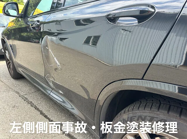 小山市 BMW X3 20d 左側事故破損・ドア交換 板金塗装修理 カワマタ商会グループKレボリューション