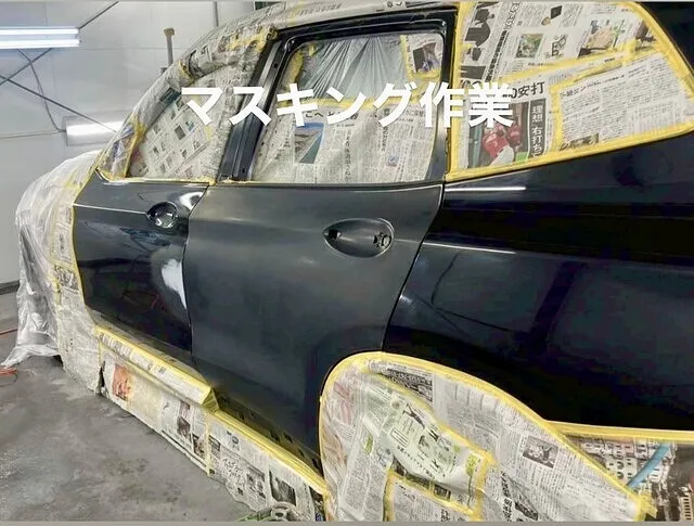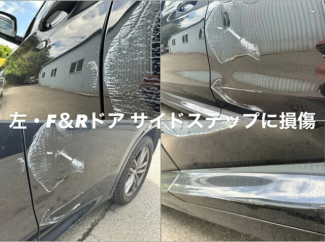 左側 フロントドアパネル・リアドア パネル・サイドステップ の 事故箇所 板金塗装修理になります。