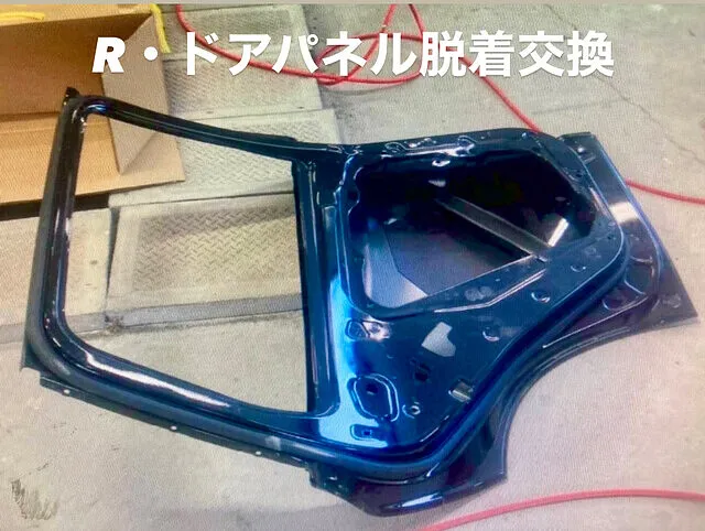 損傷の酷い リアドアパネル は 交換 フロントドアパネル・サイドステップ は 板金修理する事になりました。