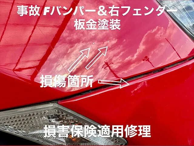 停車中 に右フロントに当てられた事故になります。100対0の事故で 相手側の保険対応で 修理しました。